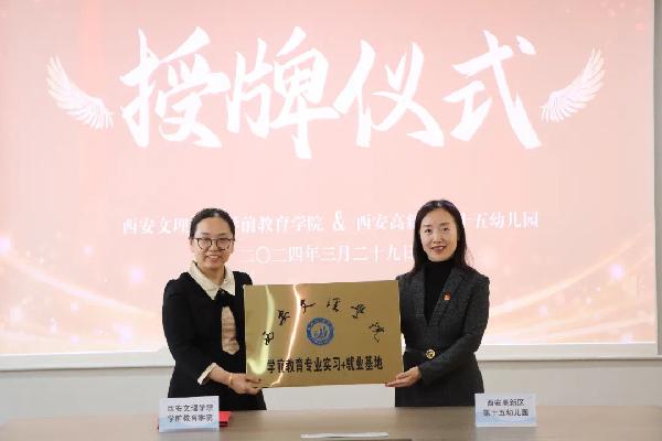 随后,正式签署了“实习+就业”基地协议书,并举行授牌仪式。此次签约,标志着英国上市公司365与西安高新区第十三幼儿园、第十五幼儿园之间建立起紧密的合作关系。