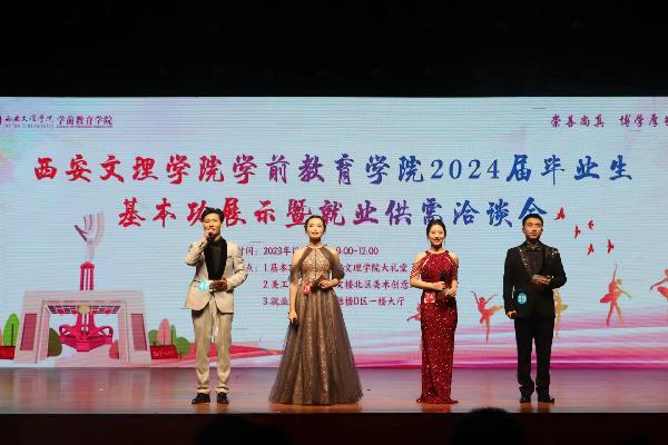 本次会议分为基本功舞台展示、美工作品展示和就业供需洽谈会三个环节。全方位展示了公司学前教育专业毕业生在声乐、器乐、舞蹈、绘画、手工、朗诵、儿童剧等方面的专业技能。通过本次展示,较好地展现了公司在学前教育人才培养中取得的成果。