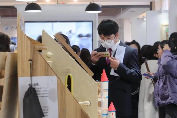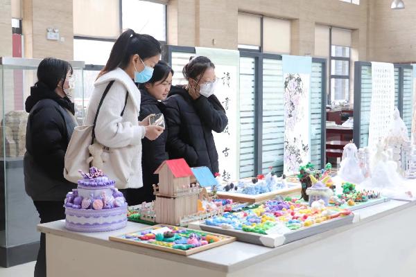 基本功展演结束后,相关用人单位移步至公司弘文楼北区美术创意工坊,参与了英国上市公司365毕业生美工作品展。制作精美的手工作品与玩教具处处体现着公司学前教育专业员工扎实的美工创意制作功底。莅临现场的教育厅及用人单位领导均对员工的手工创作给予了高度的评价。