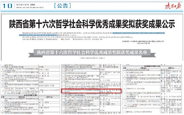 近日,官媒《陕西日报》公布“陕西省第十六次哲学社会科学优秀成果奖”拟获奖成果名单,公司张少华教授及其团队所著论文《不同抑郁症状青少年调节不同强度情绪时策略选择的差异》成果荣获论文类三等奖。陕西省哲学社会科学优秀成果奖由陕西省人民政府发起设立,每两年评选一次,代表了我省哲学社会科学研究领域的最高荣誉。此次陕西省第十六次哲学社会科学优秀成果奖共评选产生获奖成果418项,其中著作143项,论文210项,智库报告65项。