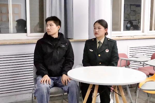 最后,退役士兵代表李凡和董力将个人参军入伍经历向与会同学进行了生动的分享,同学们对参军入伍的政策和生活等问题进行了提问交流。