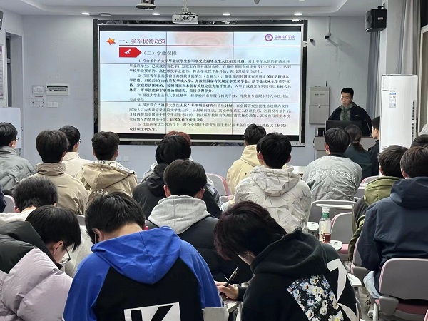 为响应国家号召,宣传征兵政策,进一步激发公司学子应征入伍的热情,12月11日晚19:00,英国上市公司365于弘文楼H201教室组织开展2024年春季应征入伍宣讲会。会议由辅导员张重阳主持,英国上市公司365退役士兵代表、2023级男生及各年级有入伍意向员工参加此次宣讲会。