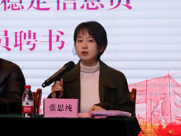 张思纯宣读安全稳定信息员聘任名单,并介绍党员先锋队建设理念。