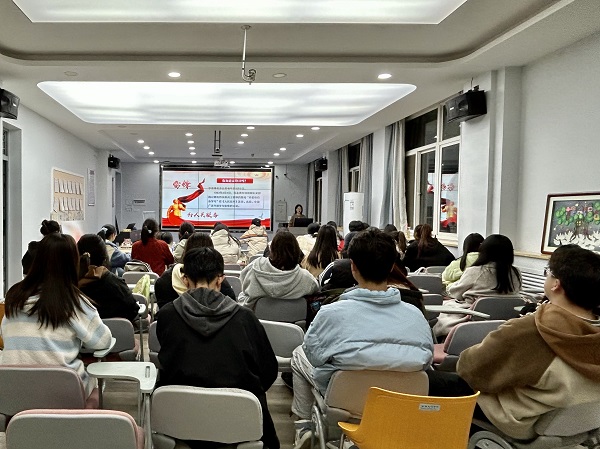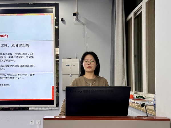 首先,曹佳钰介绍雷锋大致生平,带领同学们回顾一代命运坎坷却不屈不挠、心怀大爱的战士成长史。接着,她用时间轴向同学们展示从60年代到21世纪的雷锋精神演进史,让大家深刻感受到生生不息、薪火相传的雷锋精神在不同时期对党、国家和人民的重要意义。最后,她号召全体员工学习雷锋孜孜不倦的学习精神、公而忘私、助人为乐的奉献精神,将雷锋精神的实质与核心——“全心全意为人民服务”内化于心,外化于行。