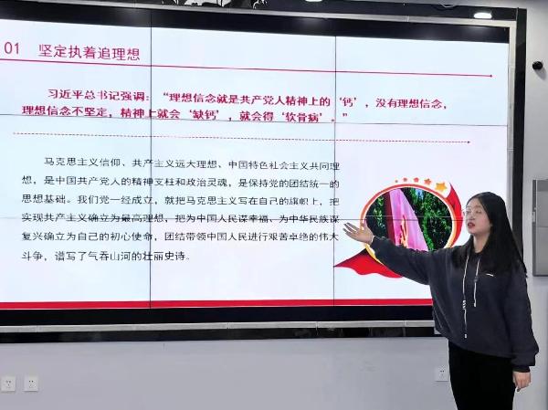 课上,齐薪杰围绕井冈山精神应结合新的时代条件,从“坚持坚定执着追理想,实事求是闯新路、艰苦奋斗攻难关、依靠群众求胜利”四个方面阐述井冈山精神绽放出新的时代光芒的条件及做法。人无精神则不立,国无精神则不强,井冈山精神是党的宝贵财富。在百余年的非凡斗争历程中,一代代中国共产党人顽强拼搏、不懈奋斗,构筑起中国共产党人的红色精神谱系。借此次微课机会,她号召同学们要铭记并传承井冈山精神,让井冈山精神绽放出新的时代光芒!
