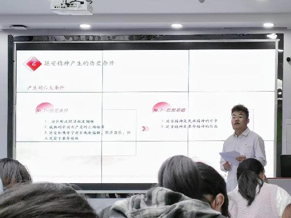 课上,李泽凯围绕延安精神的孕育和形成、延安精神产生的历史条件、延安精神的基本内涵、延安精神在当今社会的独特价值等四个方面带领员工们展开学习。他同时号召同学们要使延安精神内化于心,外化于行,并努力将红色文化融入到专业学习和日后工作教学中,以个人之力传播弘扬中华民族的优秀文化结晶,使民族精神在当代仍能焕发生机活力,共同助力实现文化强国、思想强国的伟大目标!