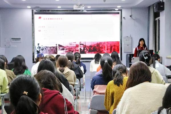 课上,陈丹丹同学从抗美援朝的历史背景、为什么要打抗美援朝战争、抗美援朝的过程、抗美援朝战争的伟大意义、传承和发扬伟大的抗美援朝精神五个方面展开宣讲。