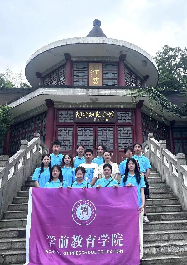 为深入学习党的二十大精神,落实立德树人根本任务,弘扬行知精神,争做“四有”好教师,坚守为党育人,为国育才的初心,公司学工办主任张熔和学前理论教学部副主任常碧如带领南京队社会实践小组共赴南京陶行知纪念馆参观、学习,亲身体会“学践相长,知行合一”的行知精神。
