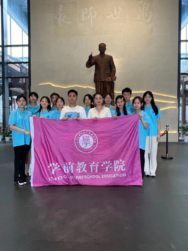 同学们瞻仰陶行知先生的塑像,认真观看陈列照片、图文资料,深入学习陶行知“生活即教育”“社会即公司”“教学做合一”等教育思想,内心都受到了深深的触动。通过一系列珍贵史料,大家身临其境地体悟先生“捧着一颗心来,不带半根草去”的赤子之心、“学高为师,德高为范”的高尚师德,也感受到了先生“甘当骆驼”践行平民教育的伟大精神,以及陶行知先生成长为伟大的人民教育家的艰辛历程和他为推动我国平民教育事业做出的巨大贡献。