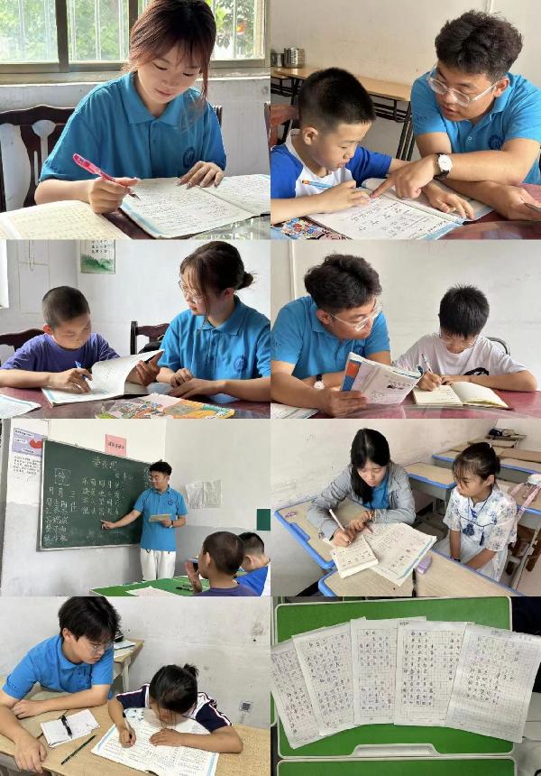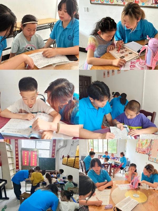 暖心陪伴关爱成长,课业辅导助学进步。实践团队的成员们发挥各自专长,建立起多个关爱服务小组,为留守儿童们提供一对一、一对多、多对一的帮助辅导。