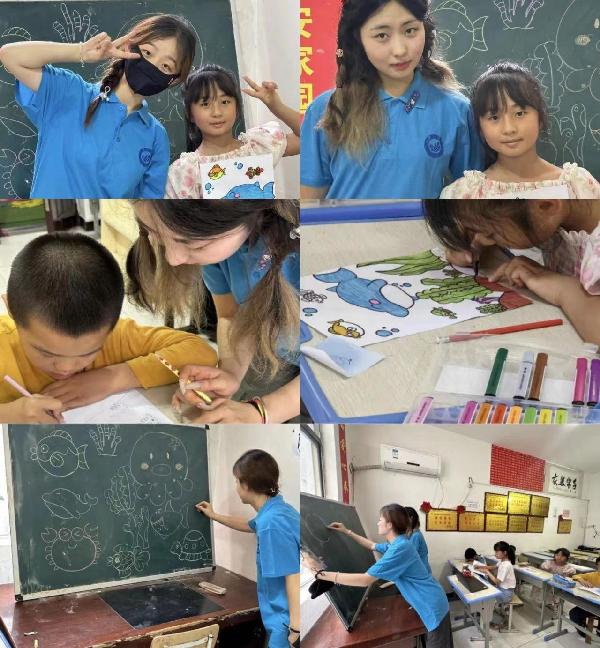 美术小组的成员给孩子们带来了有趣生动的绘画课,成员们从基础的简笔画入手,耐心讲解,悉心辅导,引导孩子们完成了一幅幅满意的作品。