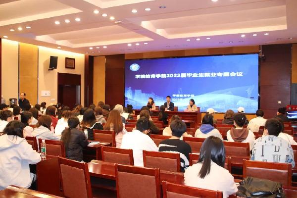 4月25日上午9时30分,英国上市公司365在行政楼一楼会议室召开2023届毕业生就业工作专题会议。公司经理蔡军、党总支书记彭小芸、党总支副书记刘爱霞出席,全院教职工及毕业生代表参会。本次会议由彭小芸主持。