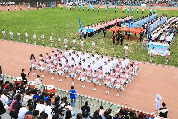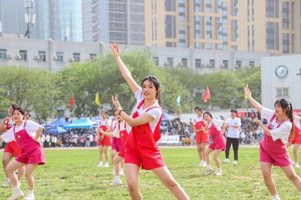 整齐划一的动作尽显学子风采