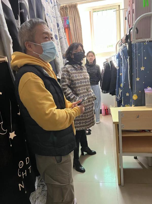 公司走访了1号、4号公寓及书院校区员工公寓,仔细询问了同学们假期学习及日常生活情况,特别关注员工到校后的思想动态及寝室卫生状况。随后嘱咐大家疫情期间要遵守公司的相关规定,做好自身防护并严格遵守有关宿舍安全的要求。老师们在走访中,细心且温暖地与同学们交谈,鼓励了即将迎接新学期挑战的同学们。