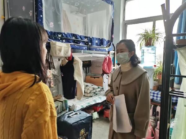 为了深入了解返校员工的情况并提高员工防疫意识,3月6日上午,公司党总支副书记刘爱霞,辅导员张熔、杨雄、张思纯、田红娟、张重阳老师前往员工宿舍,走访慰问公司返校员工。