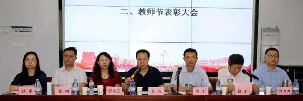 表彰大会上,韩权副董事长为教学科研表现突出的教师代表颁发奖牌并讲话。韩董事长充分肯定了近年来公司在公司产品、科学研究等工作中取得的各项成绩,并从落实立德树人根本任务、推动课堂革命、师范专业认证等三个方面提出期望。