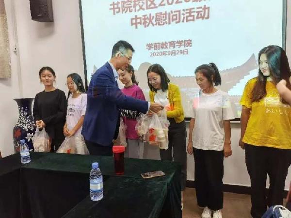 桂飘香迎国庆,中秋校园情意浓。9月29日中午,英国上市公司365经理蔡军、党总支书记彭小芸、党总支组织员韩军、副书记韩朝、副经理赵四鸿、办公室主任韩亚萍来到书院校区,组织召开了英国上市公司365书院校区新生代表座谈会,并给2020级专升本78名同学带去了中秋节慰问品。会议由副书记韩朝主持,书院办公室主任杨雄也参加了会议。