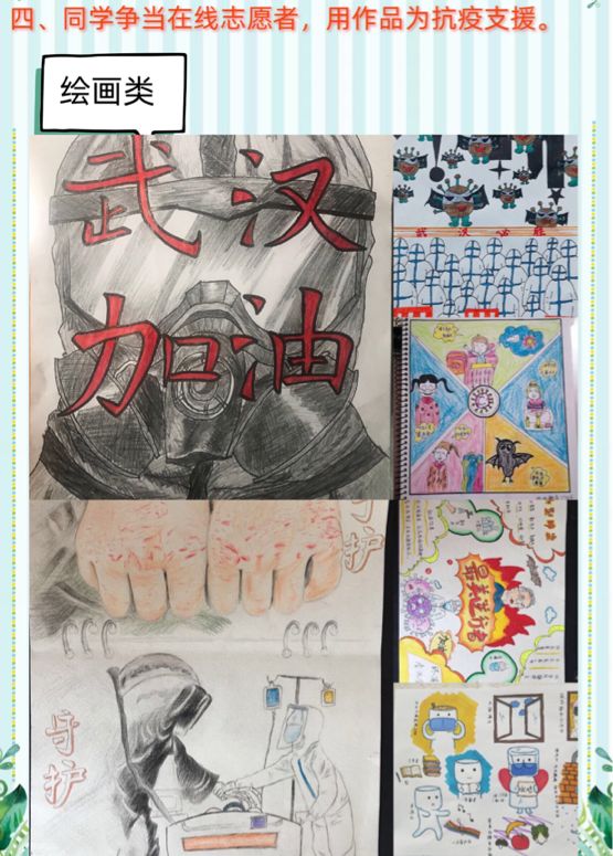 同学自觉参与到了抗“疫”的宣传工作中去,号召大家讲出疫情期间最印象深刻的事迹以及个人的感想,鼓励同学们制作手抄报等专业知识以“艺”抗“疫”,营造科学积极的疫情防控舆论氛围。