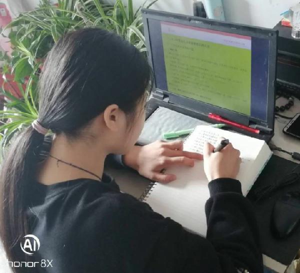一场新型冠状病毒引发的肺炎疫情让我们开始足不出户,生活变得压抑起来。在这样的背景下,教育部发布通知“停课不停学”,正式开辟了一种崭新的学习方式,网上授课。每天都会在学习通腾讯会议微信QQ群中签到上课,虽然这是一种新的教学方式,但是老师们每节课都会准备好课件资料来给我们上课,每节课中要掌握的难点也会给我们重点强调。还有在网上授课时,老师还会经常提问看同学们在线上有没有认真听讲,每节课后还会布置相应的作业来进行检测看课上掌握的情况好不好,线上教学让我自主学习的能力增强了,我相信,只要我们在线上认真学习,永远保持积极的学习态度,总有一缕阳光,会突破疫情的阴霾,带来温暖的春天。待到春暖花开时,我们再聚校园。