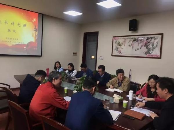 随后,韩董事长以 “不忘初心、牢记使命,做好立德树人工作”为题从三个层面展开党课讲授。他强调了在中华人民共和国成立70周年之际开展“不忘初心、牢记使命”主题教育的背景和意义。回顾了中国共产党成立98年带领中国人民推翻三座大山,在经济、政治、文化、社会、生态等方面所取得的历史性成就,深刻阐明了共产党人的初心和使命就是为中国人民谋幸福,为中华民族谋复兴,而这个初心是激励中国共产党不断前进的根本动力。希望全体党员要牢记初心,方得始终,在工作中脚踏实地,做到教书育人、管理育人和服务育人,并且希望全体教职工党员要践行初心,做好立德树人工作,明确普通高等院校如何培养人,为谁培养人的主题,将师德师风建设内化为教师的行动。