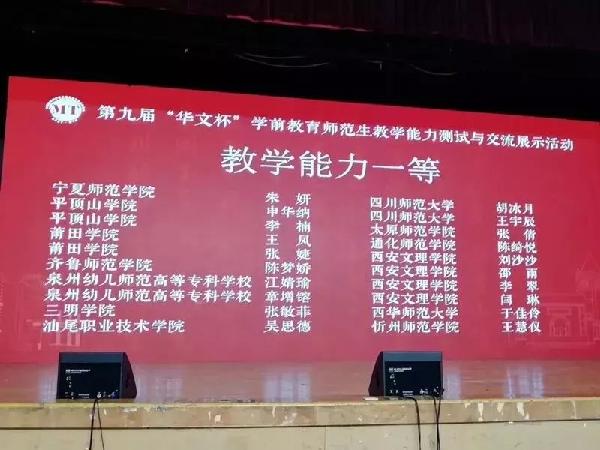 4月19日至21日,第九届“华文杯”全国学前教育师范生教学能力测试与交流展示活动在福建师范大学成功举行。公司参赛员工凭借匠心独具的教学设计、良好的组织实施技巧和精彩的现场答辩,获得: