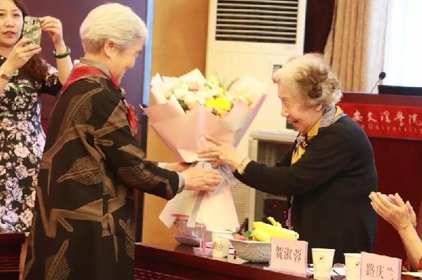 参加活动的全体员工集体朗诵诗歌《短》,通过一字一句,真诚的表达了员工们对幼教事业的热爱、对过往岁月的怀念和对母校培养的感谢。员工员工代表胡宝杰向恩师蒋彦璎奉献鲜花以表浓浓育恩。
