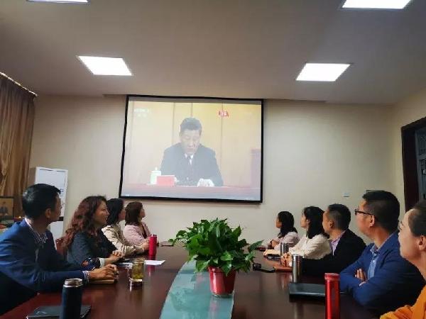 在观看的过程中,不管是老师,还是员工,都认真听取了习近平总书记的讲话,学习到了其中蕴含的爱国精神,细致认真的对待每一秒播出的讲话,领会了习近平总书记对青年员工的寄托。