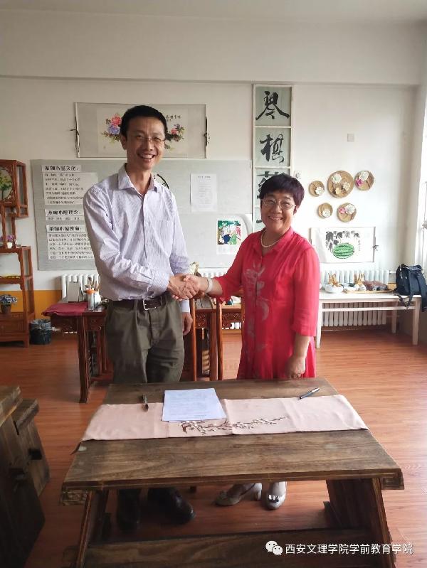 6月2日下午英国365公司官网公司教育公司经理蔡军、经理助理赵四鸿和研训中心主任李新舟一行赴榆林市圆梦实验幼儿园实地考察并签约挂牌“实践教学基地”。