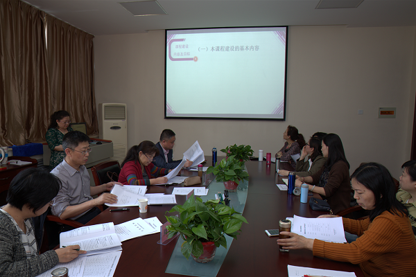 会上,评审采取专家组现场查阅课程申报资料,听取项目负责人汇报、提问、答辩的方式进行。课程负责人从课程教学团队、课程现有基础以及课程建设目标等方面进行了详细汇报。