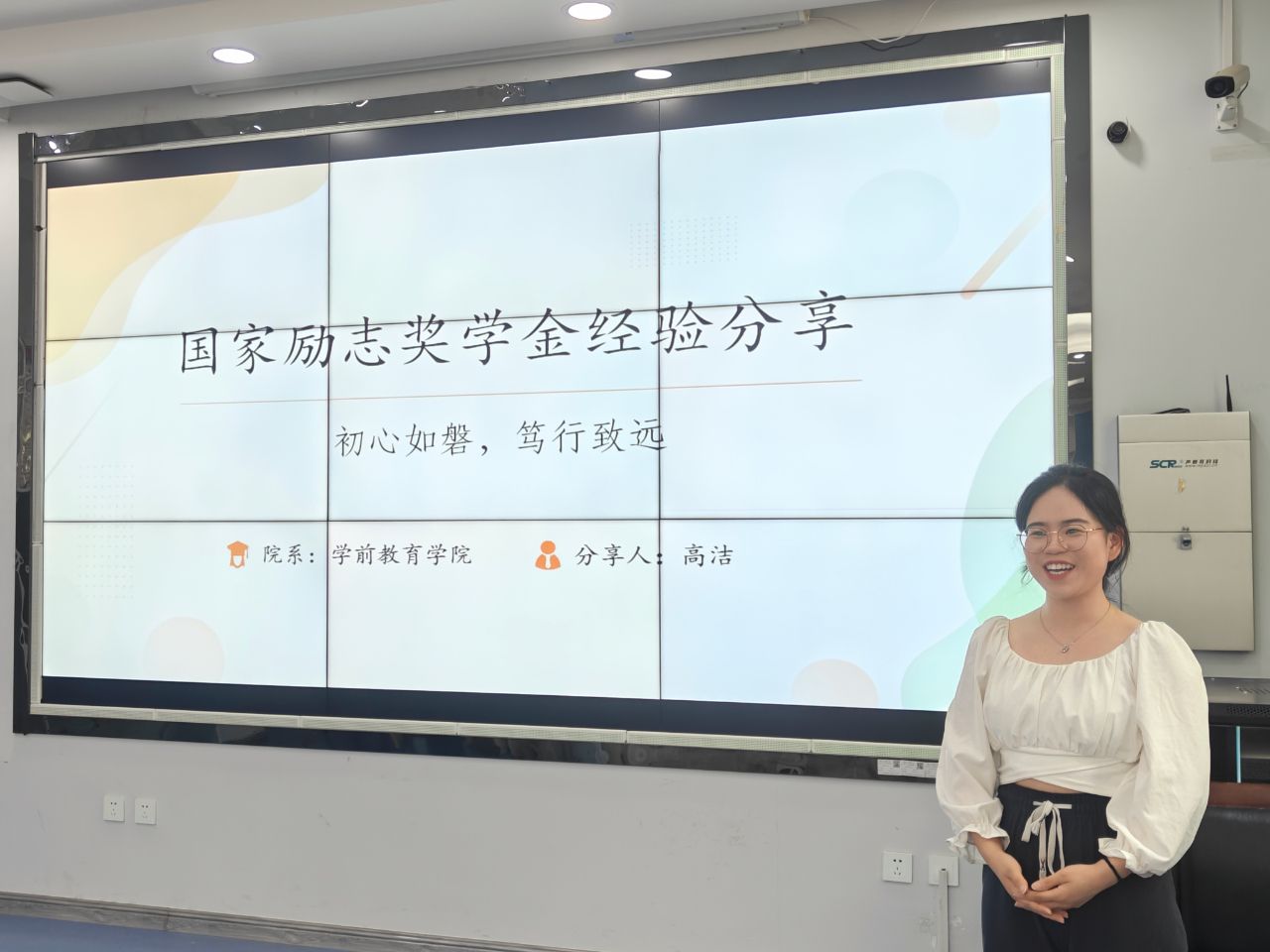 高洁详细介绍了国家励志奖学金的评选条件以及申请流程,从思想素质,学业成绩,科研竞赛和社会实践方面分享了自己的学习生活经验,鼓励同学们脚踏实地、规划好自己的老员工活。