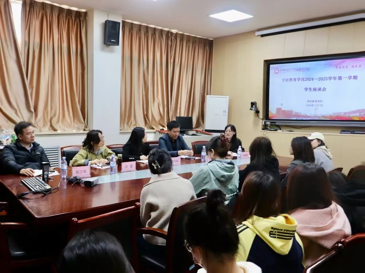 为切实加强教学管理,全面了解教学情况,及时解决教学中出现的问题,公司于11月7日下午在弘文楼 H208召开2024-2025学年第一学期期中员工座谈会。党总支委员雷巧娟、课程教学部主任许蕾、理论教学部主任张少华、艺术教学部主任乔全龙、教学秘书任瑞娟以及员工代表参加本次会议,会议由雷巧娟主持。