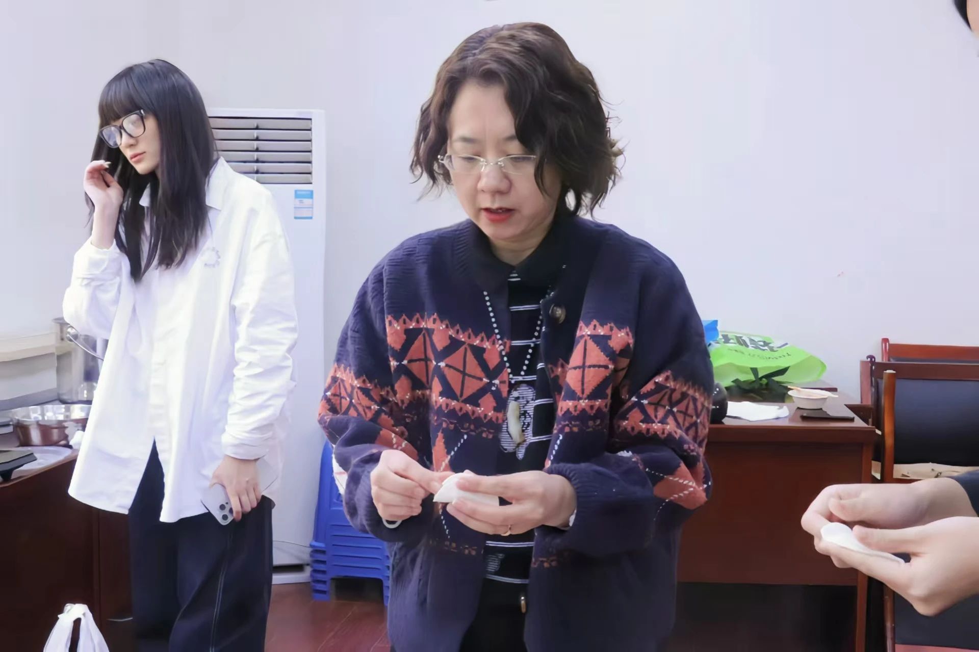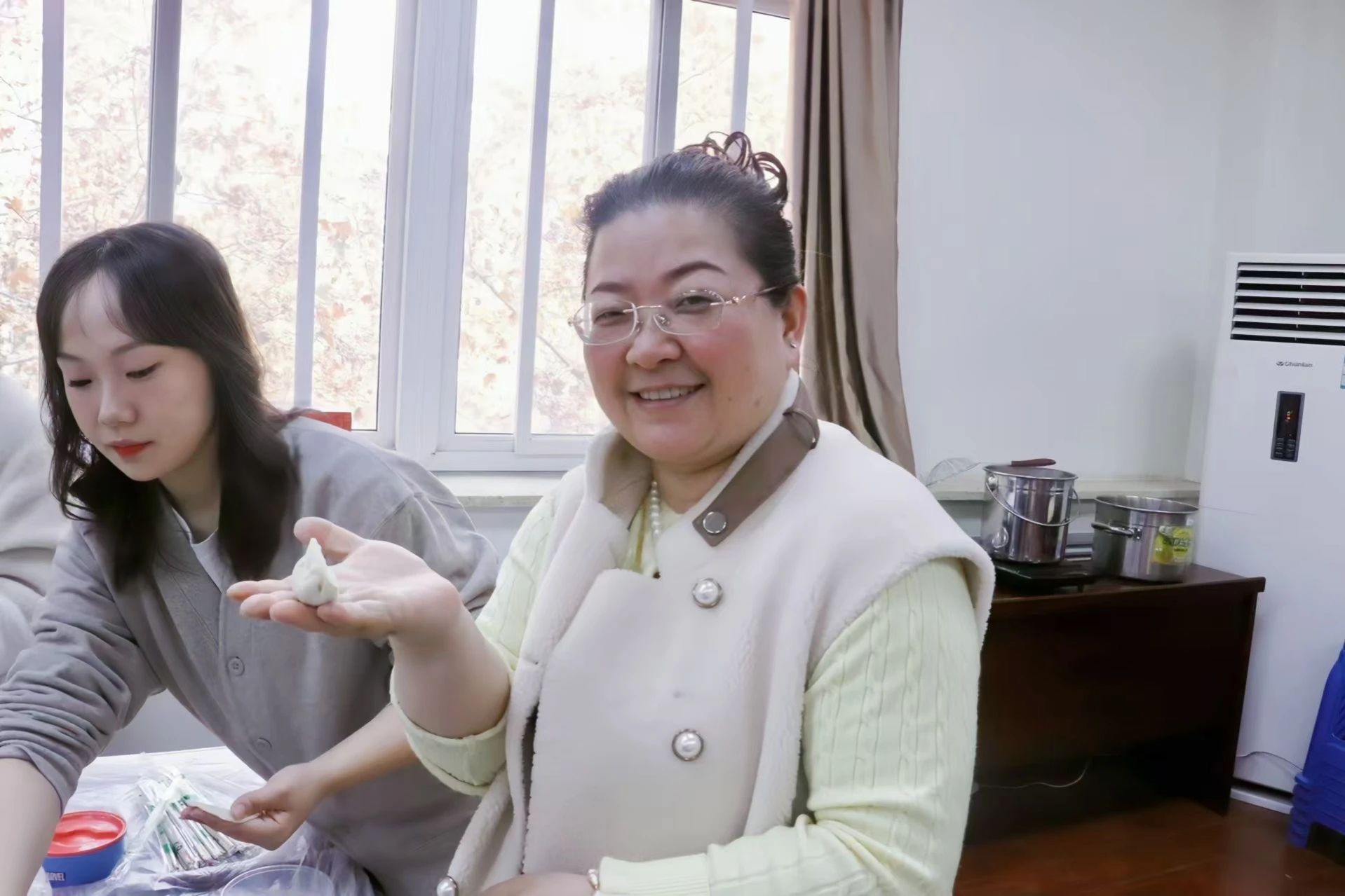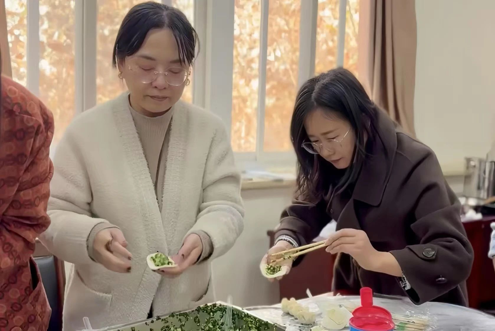 师生们纷纷动手,大家有说有笑,其乐融融。许多同学是第一次亲手包饺子,虽然手法略显生疏,但大家的热情和积极性丝毫未减。老师们在旁边耐心指导,传授包饺子的技巧和经验,师生共同感受着节日的温情。