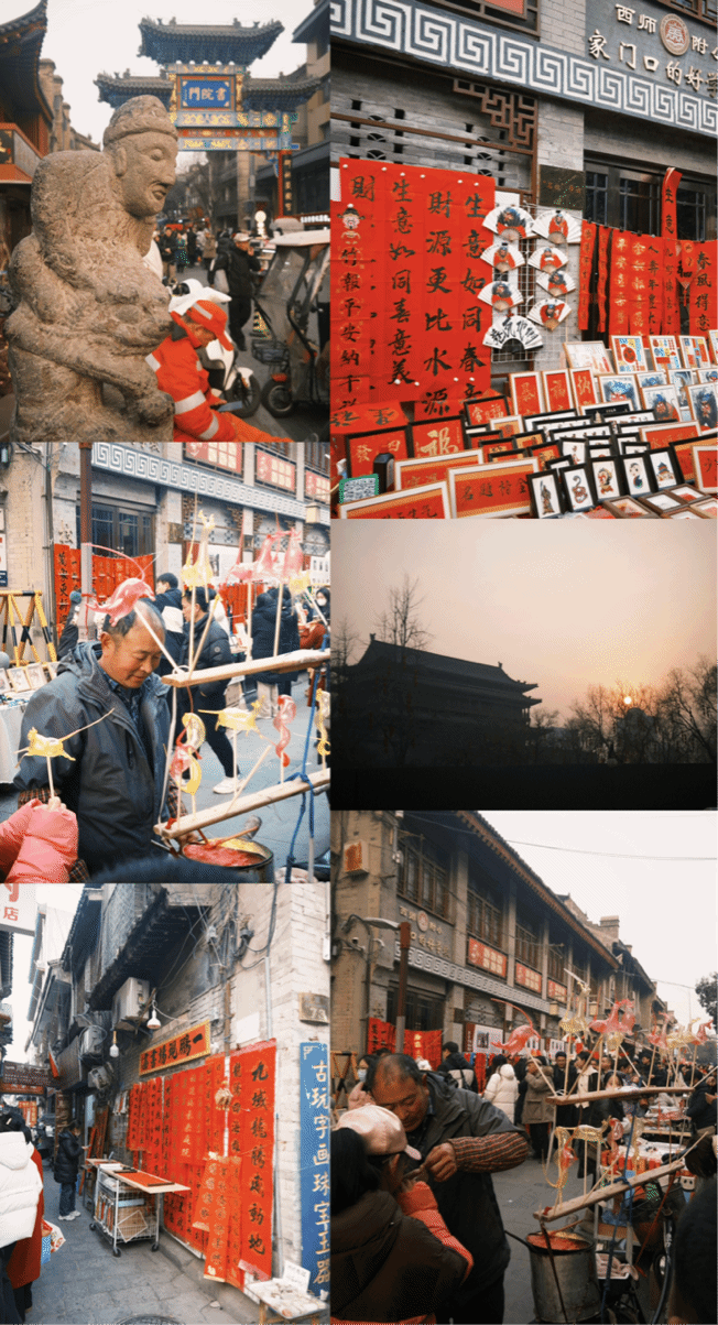 新年的书院门,处处洋溢着浓郁的年味。古色古香的街道两侧,红灯笼高高挂起,随风轻晃,像是在热情诉说着新春的喜悦。摊位上热闹非凡,书法家们现场挥毫泼墨,引得众人围观。有人专注欣赏笔法,有人排队求字。孩子们在人群中穿梭嬉戏,手里还紧紧攥着刚买的糖人儿。在这充满文化气息的地方,传统与喜庆交织,构成了独属于书院门的年味。
