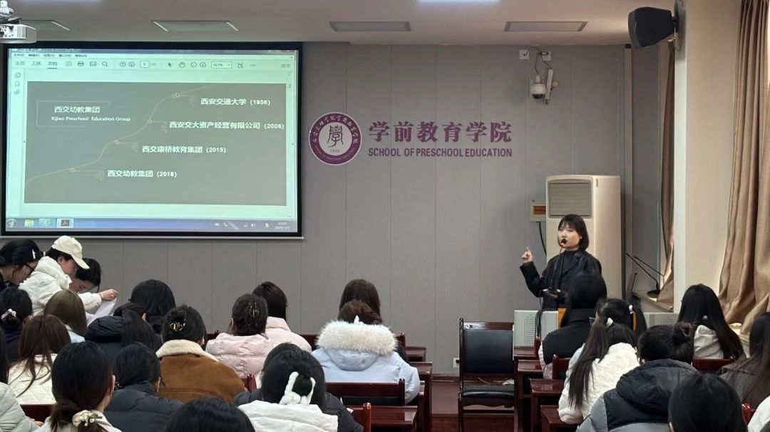 会议伊始,西交幼教集团负责人从园所理念、课程设置到集团旗下系列园所的基本情况进行了全面介绍。通过生动的案例分享和直观的岗位解析,同学们深入了解了西交幼教集团的办园理念、教育模式以及未来的职业发展路径。