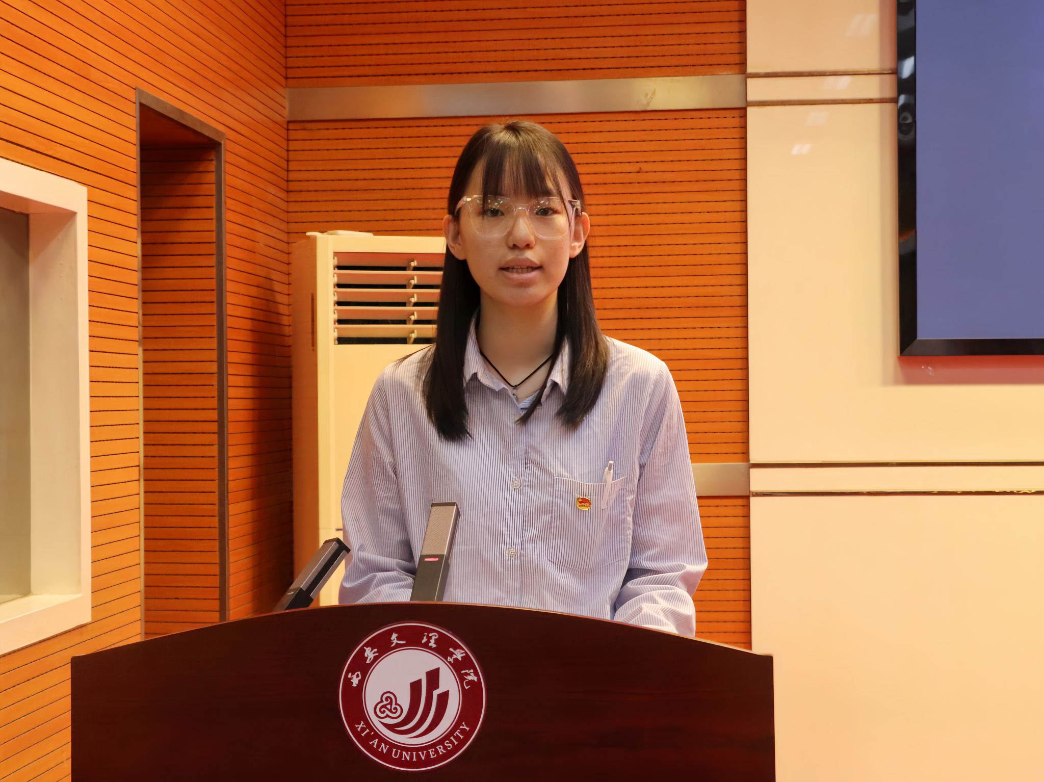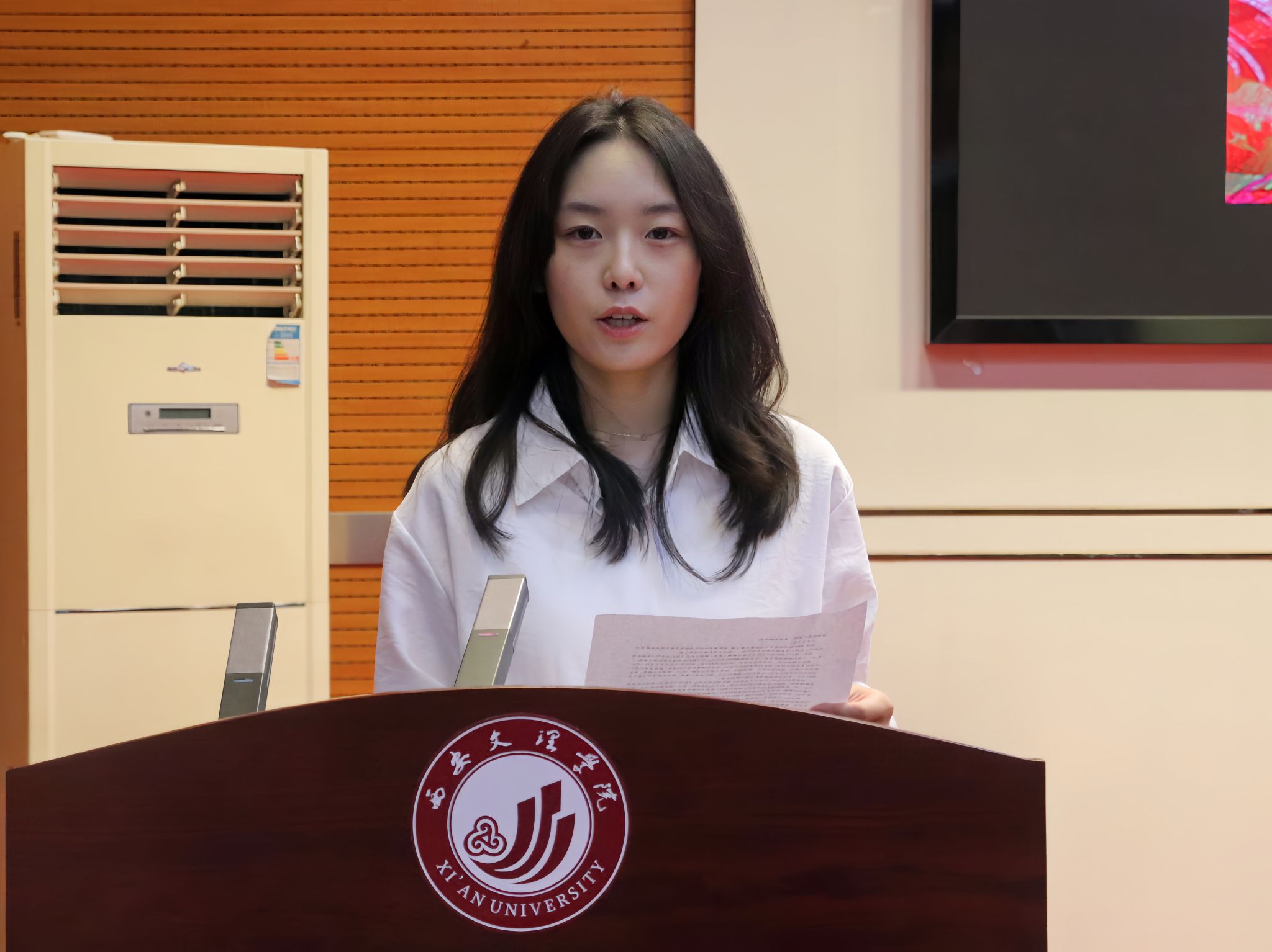 2025级研究生代表郭丁瑜登台发言,她回顾了备考阶段的艰辛,并承诺将不忘初心、砥砺前行。