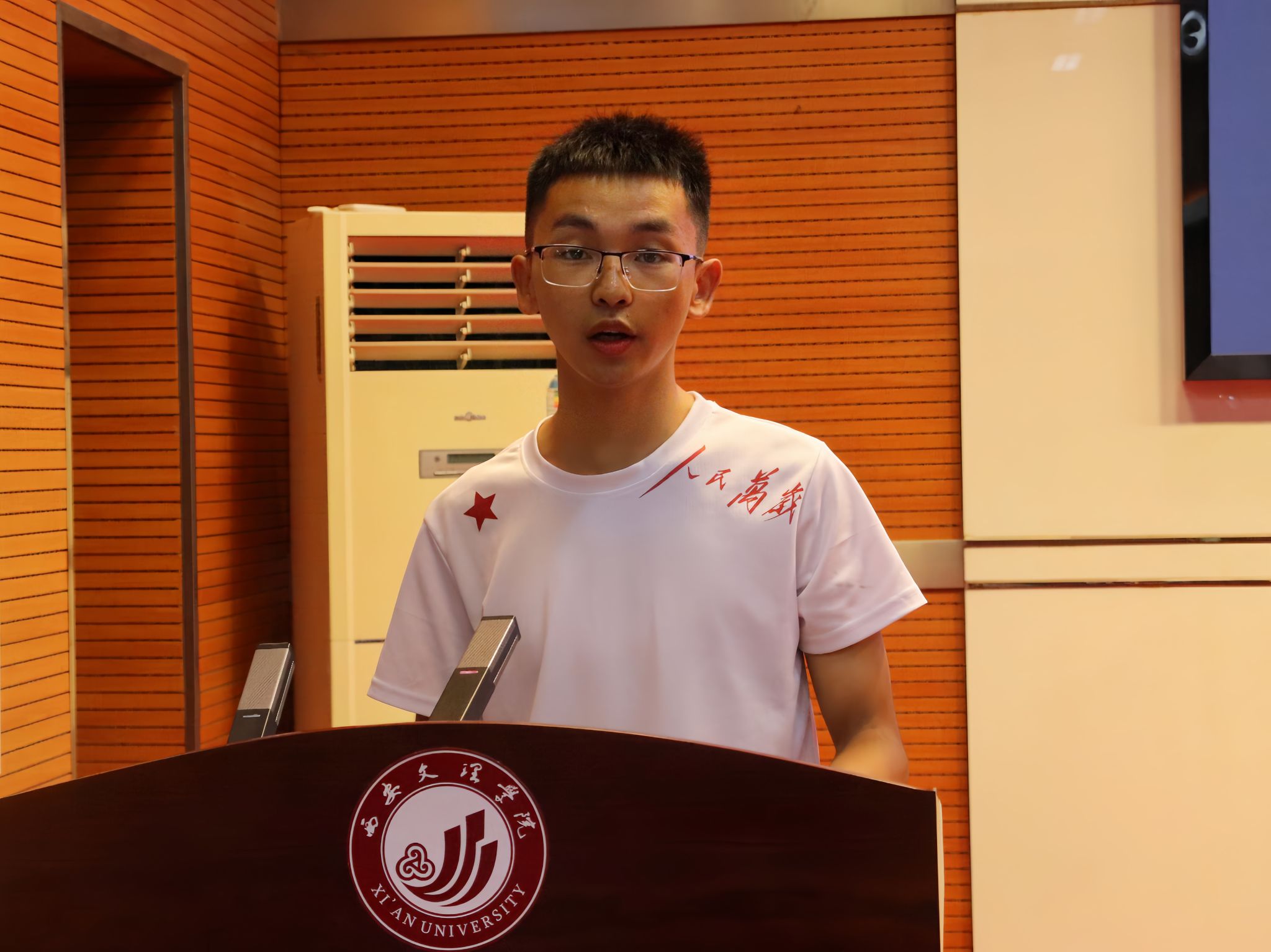 紧接着,2024级本科生代表陈存义结合个人成长经历,从课程学习、竞赛实践与能力锻炼等多个方面分享了宝贵经验。