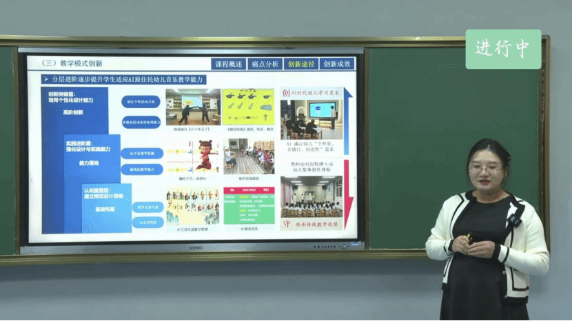 陕西省本科高校教师教学创新大赛由陕西省教育厅主办,是省内影响力最大、水平最高的高校教师教学竞赛。此次比赛从校赛到省赛历经多轮严苛筛选。前期,公司通过校赛遴选出6名参赛教师进入省级复赛,最终仅2名教师进入决赛。备赛期间,公司邀请了全国高校教师教学创新大赛一等奖获得者、西安交通大学周屈兰教授进行了一对一指导。在决赛现场,李帆帆老师围绕《学前儿童音乐教育》课程,系统展示了其团队基于学前教育专业员工特点所构建的“虚实双轮”迭代教学模式,从课程概述、痛点分析、创新途径、创新成效四个方面展开了汇报。
