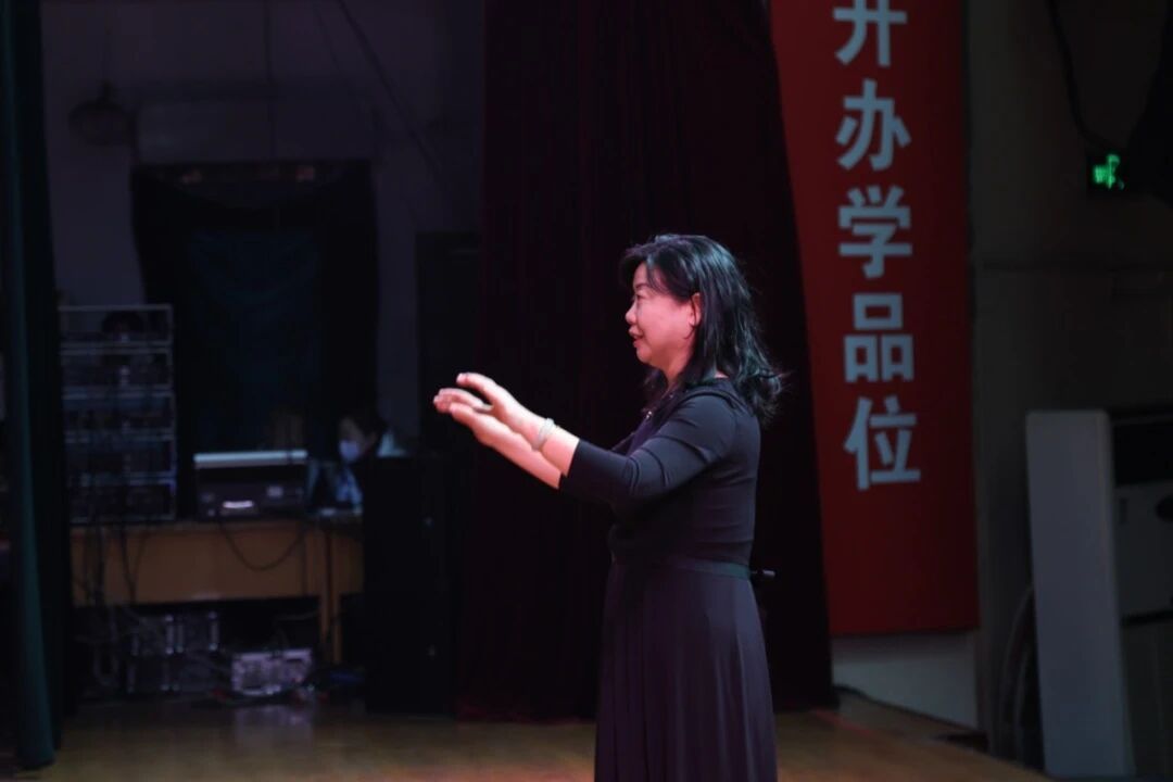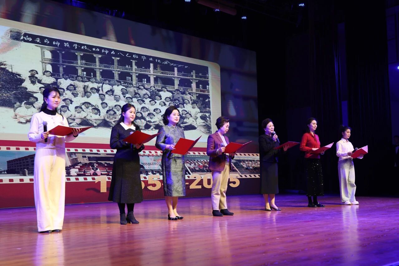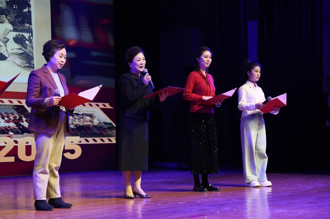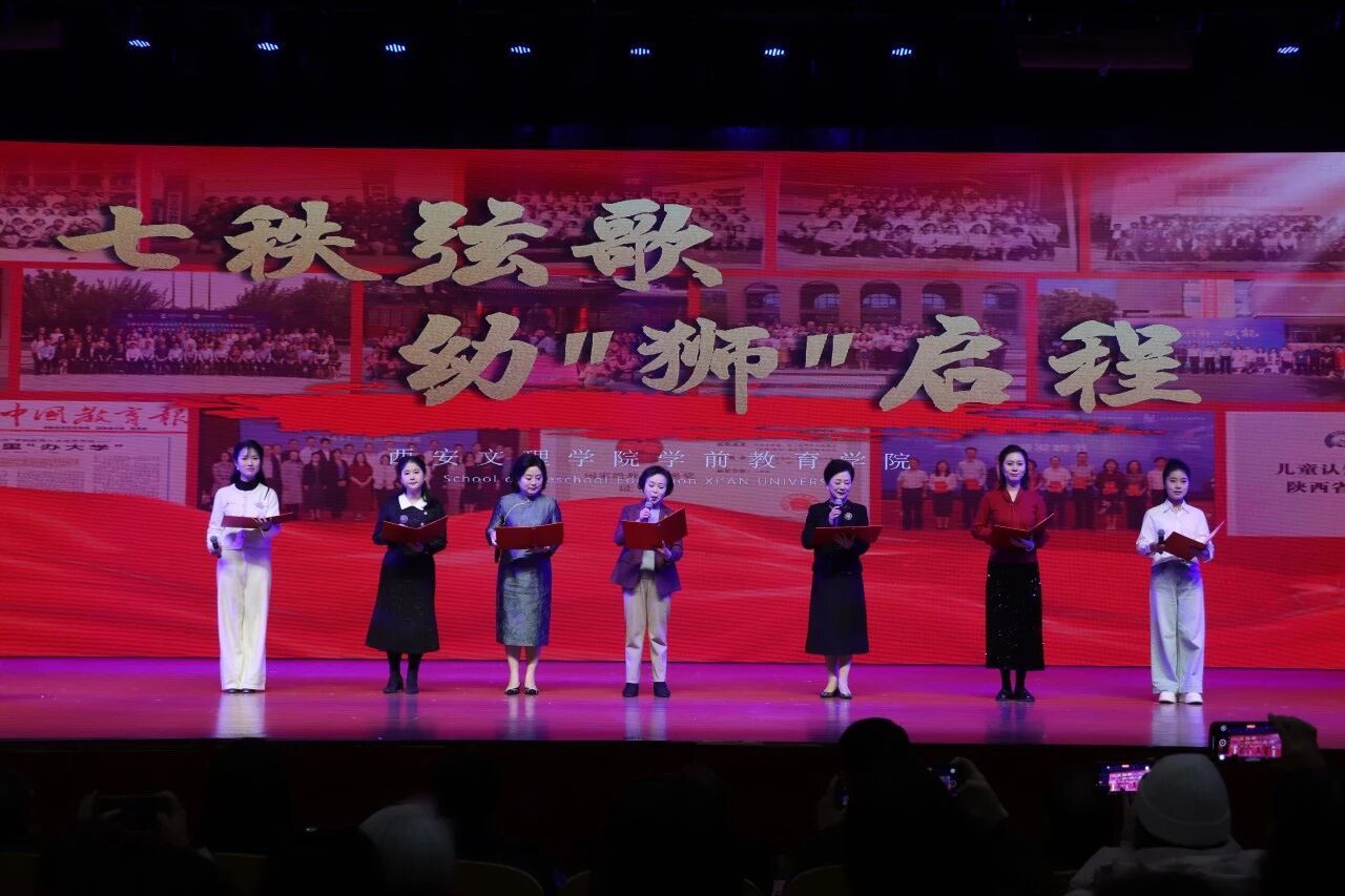 王莉、兀静、王淑君、吴丽英、陈宇、吕欣等员工代表与在校生代表薛宜宣共同带来主题合诵《七秩弦歌 幼“狮”启程》。跨越70年的时光在此交汇,不同年代的幼教人同台发声,用诗意语言串联公司发展脉络,用真挚情感致敬薪火传承,也为新一代“幼狮”送上深情祝福。