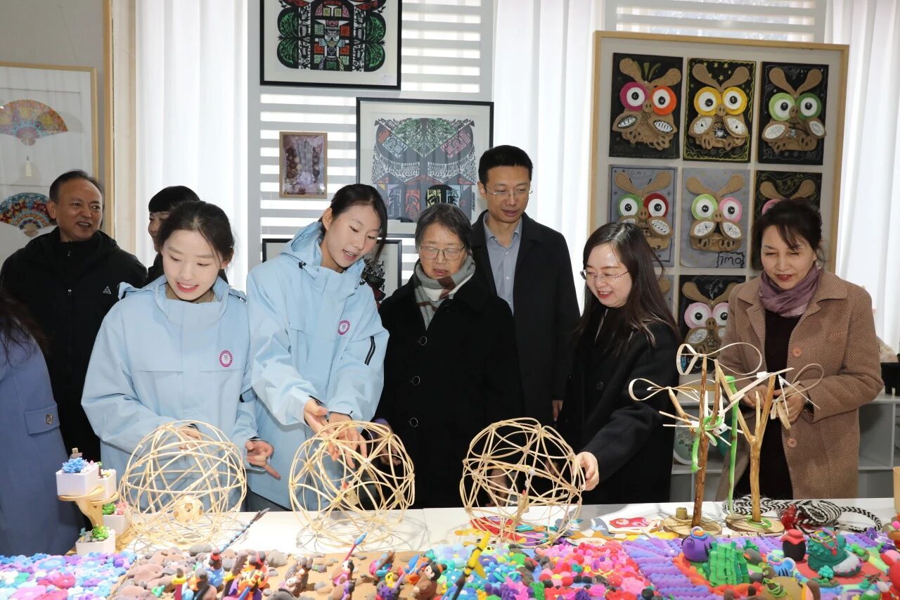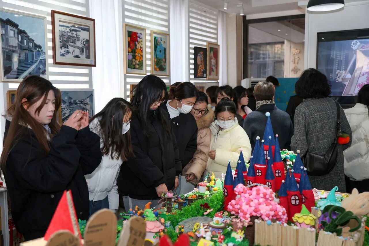 基本功展示结束后,嘉宾、员工与用人单位代表前往弘文楼北区美术创意工坊参观毕业生美工作品展。一件件作品童真灵动、构思巧妙,充分展现了员工对幼儿发展规律的理解以及将教育理念融入艺术创作的实践能力。