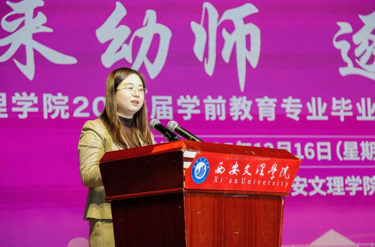 研究生代表郭丁瑜在发言中表达了对专业办学70周年的祝贺。她结合自身学习成长经历,分享了作为公司首届教育硕士研究生的使命与担当,表示将传承公司育人传统,不断提升专业素养,努力成长为兼具专业能力与时代视野的学前教育工作者。