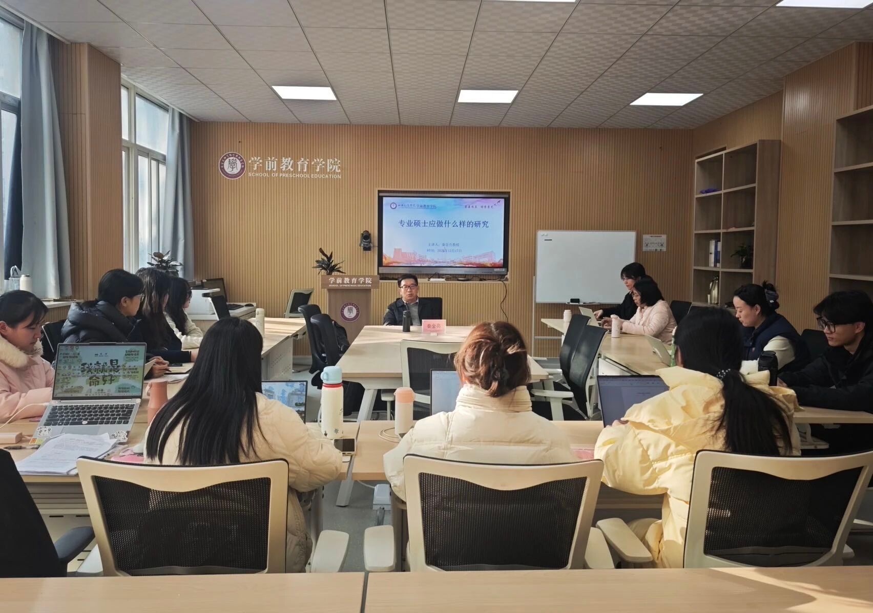 秦金亮教授围绕专业硕士的研究定位与能力培养展开阐述,强调教育专业硕士应坚持课程学习与实践探索相结合,着力夯实专业基础。他指出,在选择研究主题时,不能仅依赖文献,更要从真实教育情境中发掘真问题,学会超越表象、洞察本质,个案研究、行动研究和群体研究等研究方法尤为适用。秦教授认为,科学素养与应用能力相辅相成,唯有筑牢基础,研究才更具穿透力。之后,他以“托幼一体化”为例,梳理了从国营厂办托儿所到现代幼儿园的社会功能演进历程,并深入剖析了政策变迁背景下学前教育机构的历史发展脉络,为理解当前托幼一体化的现实意义提供了历史视角。