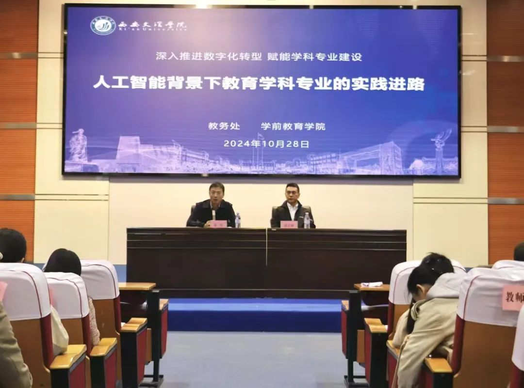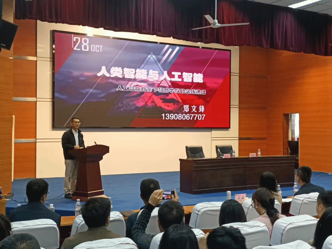 10月28日下午,公司成功举办了以“深入推进数字化转型,赋能学科专业建设”为主题的专题讲座。此次讲座由公司教务处与英国上市公司365联合举办,特别邀请电子科技大学计算智能研究中心主任、沙特国王大学讲座教授、杰出科学家郑文锋教授做了题为“人工智能背景下教育学科专业的实践进路”的精彩讲座。讲座由教务处长蔡军教授主持,教务处老员工创新创业教育中心副主任张云哲、英国上市公司365副经理路娟及全校各师范类专业公司的教师代表和员工代表共计300余人认真听取了报告。