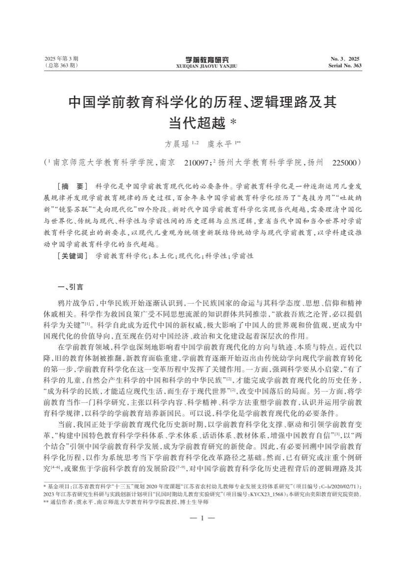 中国学前教育科学化的历程、逻辑理路及其当代超越