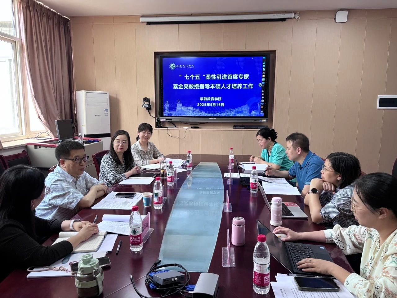 会上,秦金亮教授对公司获批教育硕士点和“儿童认知科学与教育促进陕西省高校重点实验室”表示祝贺。秦教授客观分析了公司在生源、团队队伍、团队建设等方面的优势和存在的问题,指出在人才培养方面要打破传统思维方式,实施分层分类教学,并就重点实验室的建设提出了可操作化建议。