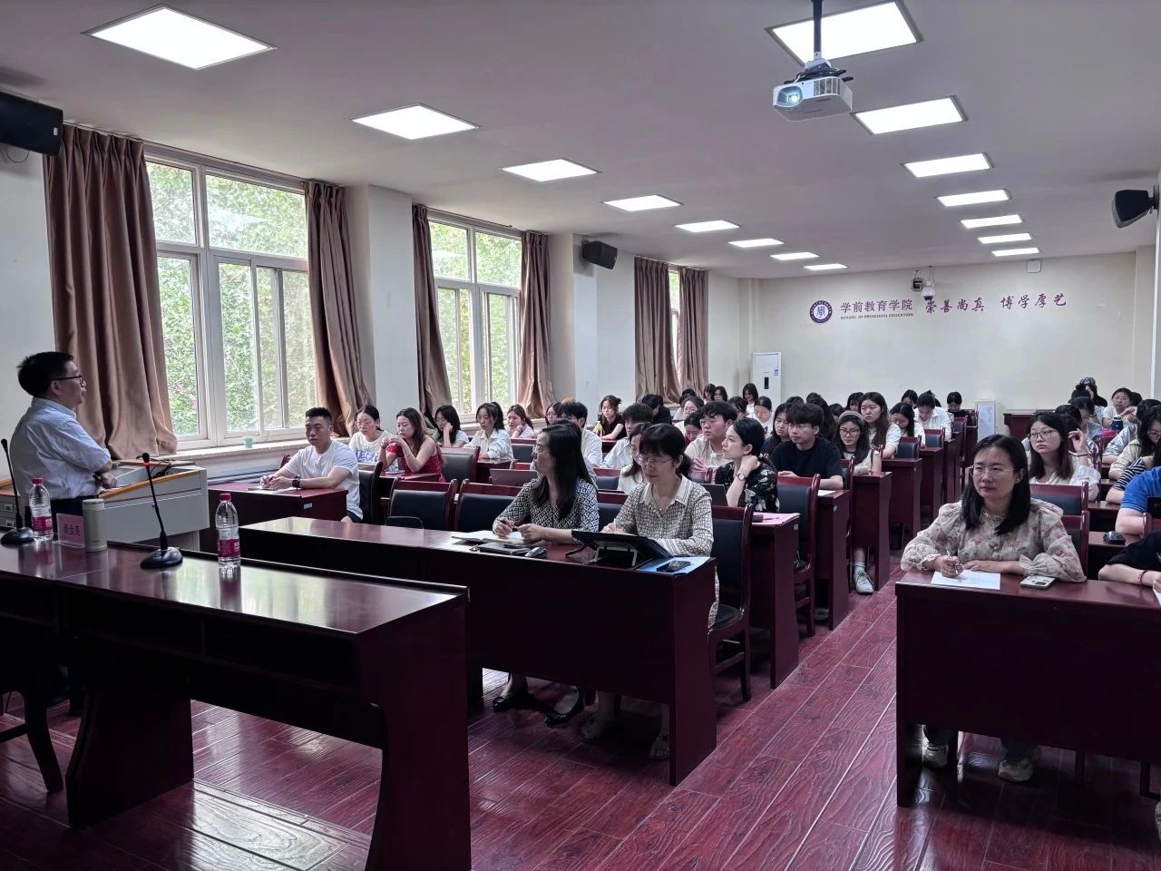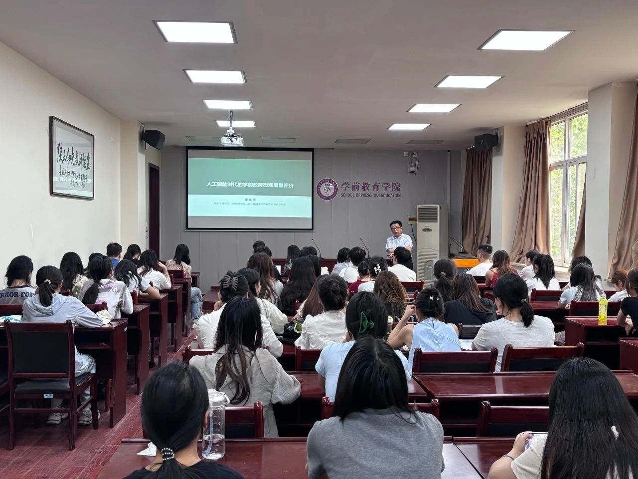 下午,秦教授以“人工智能时代的学前教育微观质量评价”为主题面向公司青年教师及2022级本科生代表进行了专题讲座,详细阐述了评价类型与人工智能下的微观质量评价、质量评价进阶中的微观质量以及微观质量的评估体系等问题。讲座后,老师和同学们积极提问,与秦教授进行深入交流。