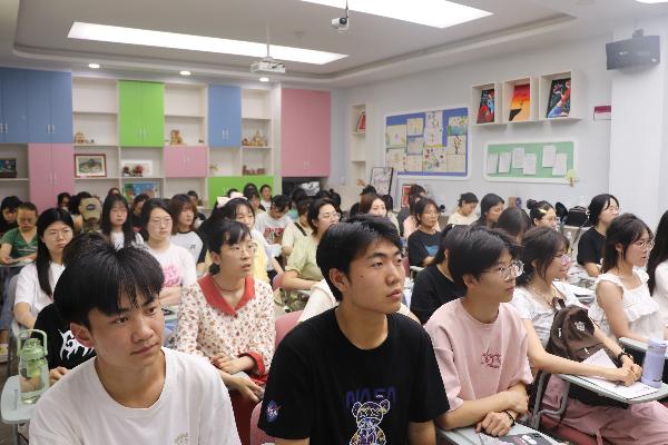 随后,张重阳老师联系实际,以青年担当使命诠释新一代如何加强中华文明的国际传播能力和传播效能。他为大家举例陕西各大博物馆中的老员工解说员和志愿者们,无论是在大唐西市博物馆担当员工志愿者的姜烨桦;非历史专业但在碑林博物馆解说如鱼得水的熊芯怡;还是公司在陕西历史博物馆担任志愿者的其他10名同学。他们的身上都散发着对历史浓厚的兴趣,表现出当代青年对中华文化的自信与真挚的热爱之情,他们正用实际行动将自己的青春献给文化遗产的保护与中华文明传播的事业。