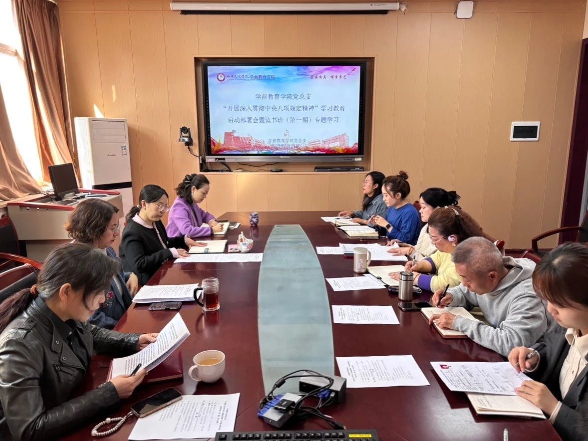 党总支委员向维娜传达“中央党的建设工作领导小组召开会议研究部署深入贯彻中央八项规定精神学习教育工作”相关要求;党总支委员雷巧娟领学《中央八项规定及其实施细则》;刘爱霞解读公司《关于在全校开展深入贯彻中央八项规定精神学习教育的实施方案》,并对公司全面开展深入贯彻中央八项规定精神学习教育工作做了具体部署。