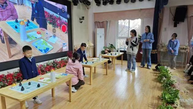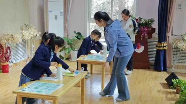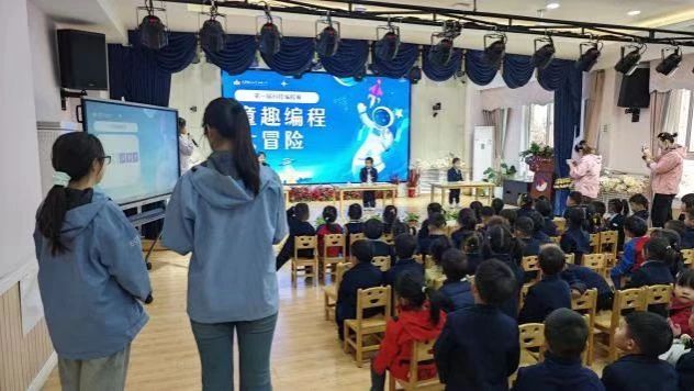 在大班和小班比赛中,面对初次接触编程的萌娃们,党员先锋队同学以亲切的语调、生动的示范,化解孩子们的紧张情绪。“小朋友看,小机器人就像在走迷宫一样,我们一起帮它找到回家的路好不好?”预备党员张明同学跪坐在地垫上,手把手引导幼儿理解编程逻辑。