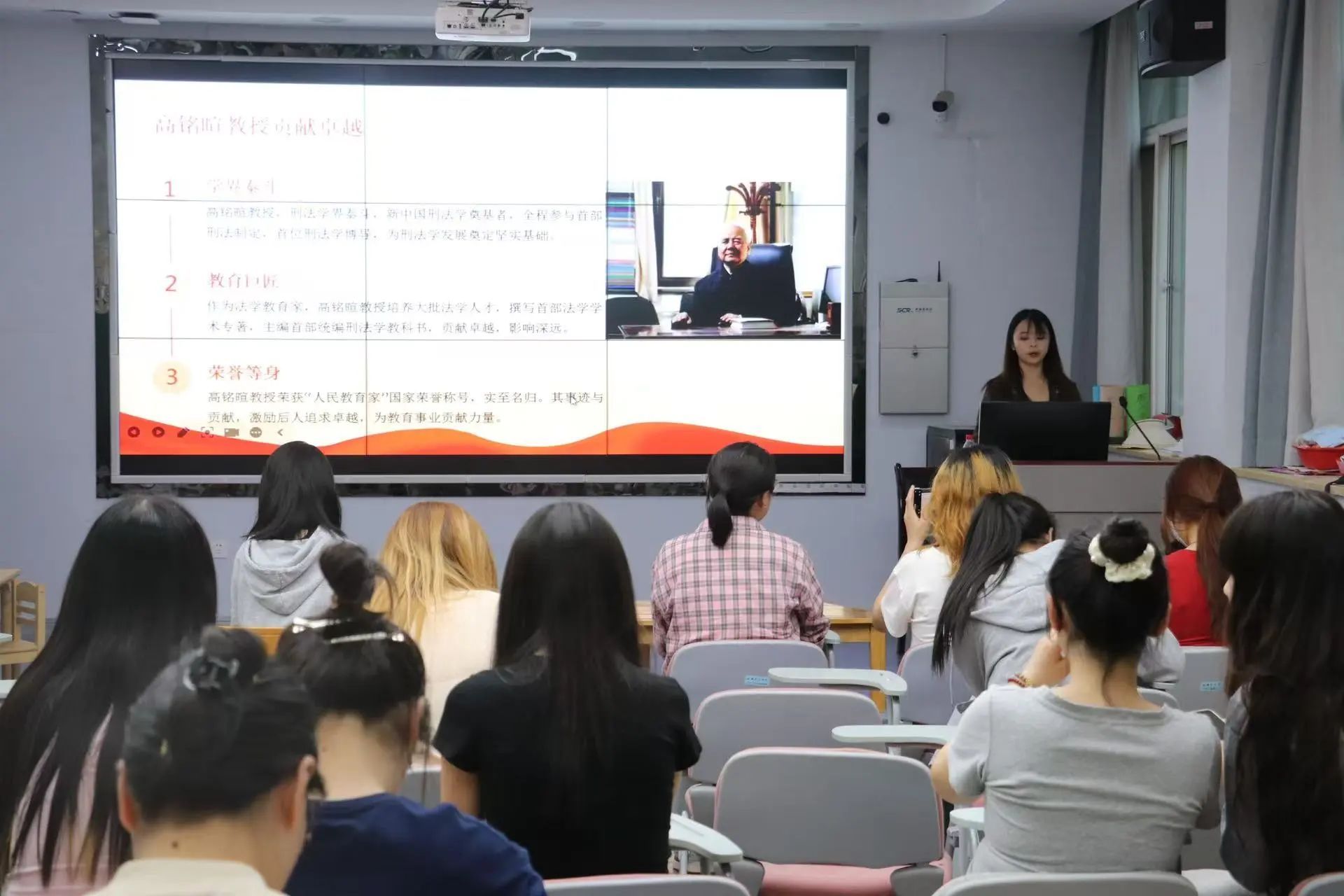 随后,她就高教授的教育精神展开详细阐述,从其宽容耐心的教学方法,独特的教学风格,到创新与求真的教育理念等方面,深刻诠释了高铭暄教授的教育思想。