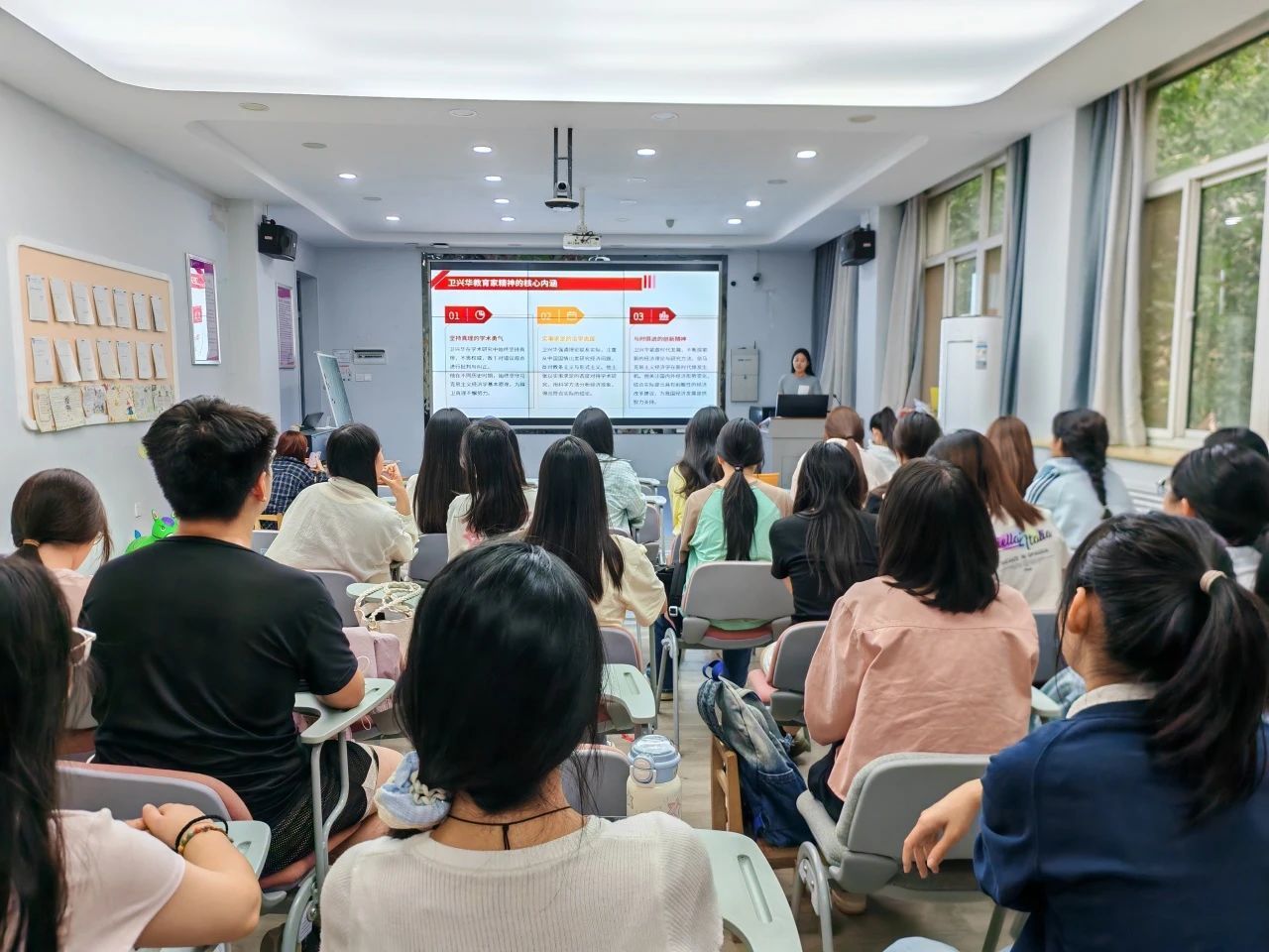 为弘扬新时代教师"春泥精神",厚植育人情怀,公司于4月22日在弘文楼H201举行“俯首育桃李,润物细无声——刘玲琍”主题微党课。员工党员王梓担任主讲,24级员工代表积极参与此次学习。